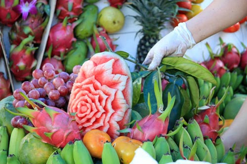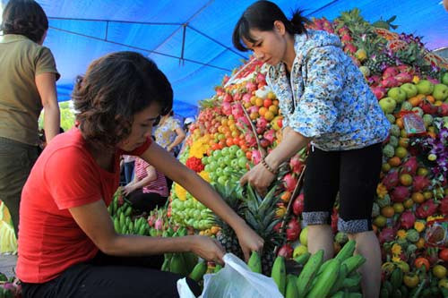 Hoa quả để xếp cỗ được lựa chọn kỹ càng, hầu hết đều là các sản vật của địa phương