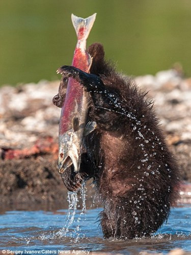 "Thật tuyệt khi được tận mắt thấy gia đình gấu đi bắt cá. Tôi đứng cách xa chúng khoảng 50m", Ivanov cho biết.