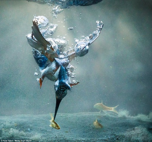 Trước đây không lâu, nhiếp ảnh gia động vật hoang dã Petar Sabol cũng mang đến cho người xem những hình ảnh ngoạn mục về màn săn mồi của chim bói cá.