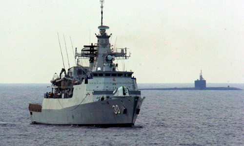 Về phía Hải quân Malaysia, nước này đã triển khai 3 tàu chiến gồm: KD Lekiu, KD Lekir và KD Pahang chở theo các máy bay trực thăng tới khu vực tìm kiếm. Trong ảnh là chiếc KD Lekiu sẽ được điều động tới vùng biển máy bay gặp nạn để tìm kiếm.