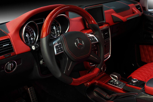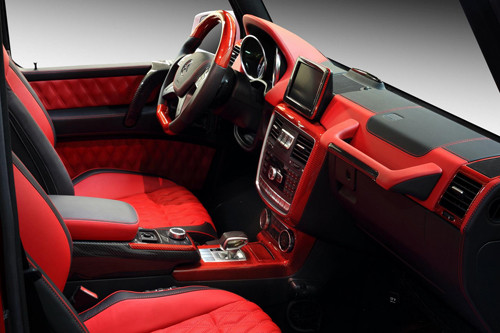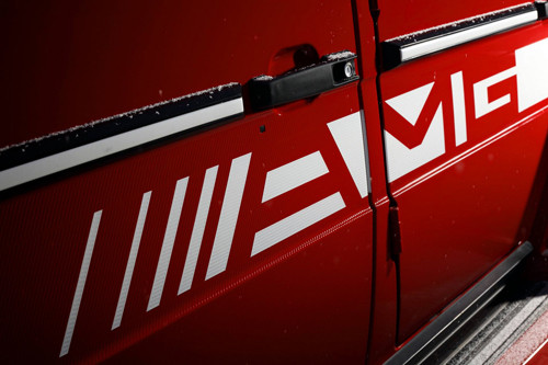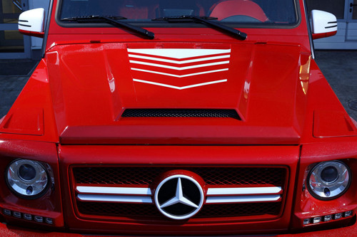 Chiếc G63 AMG sử dụng màu đỏ không thường thấy cho dòng SUV này đồng thời bọc bộ bodykit của Hamann.