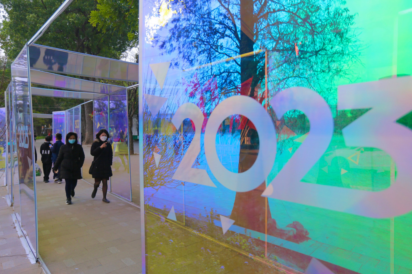 | Nhiều khu vực quanh hồ Gươm được bố trí các tiểu cảnh đón chào năm mới để người dân và du khách chụp ảnh, tham quan. Ảnh: Duy Phạm |