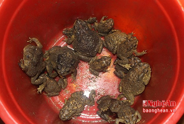 "Đồ nghề" đi săn cóc là đèn pin và xô để đựng.