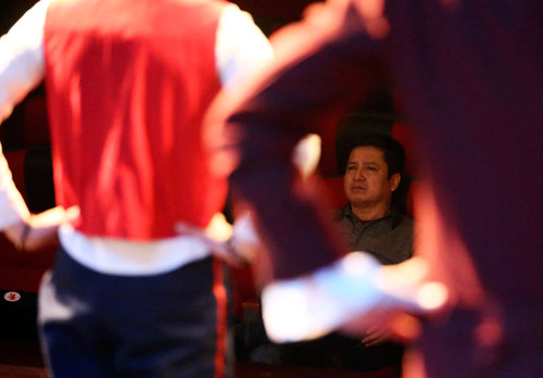 Theo dõi các diễn viên diễn thử, Chí Trung luôn để ý từ những chi tiết nhỏ nhất. Anh liên tục yêu cầu đoàn diễn tạm dừng để chỉnh sửa từ dáng đứng, dáng đi cho đến lời thoại, biểu cảm khuôn mặt...