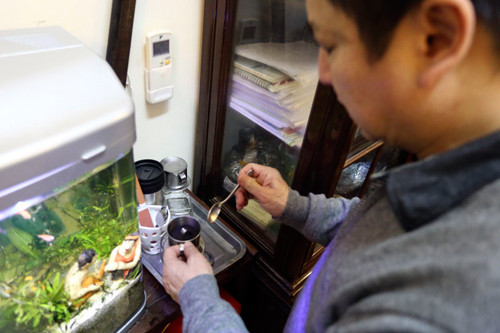 Mỗi sáng đến cơ quan, dù bận đến mấy anh cũng không quên ngó qua một vòng hỏi thăm những “người bạn” thân thiết, cho cá ăn và pha một tách café đen, nhâm nhi trước khi bắt đầu một ngày làm việc.