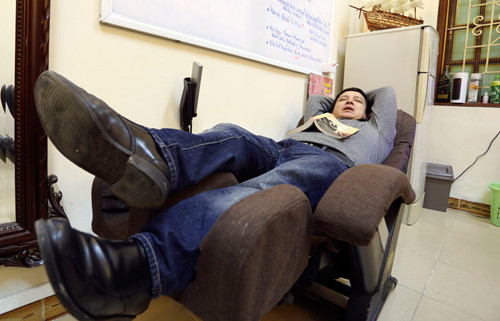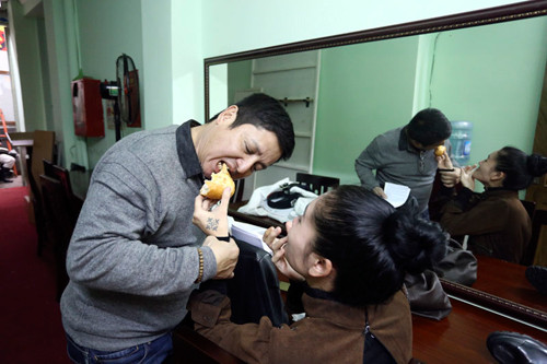 Để tiết kiệm thời gian, thay vì hẹn bạn bè cafe hay ăn nhậu ban trưa, đạo diễn Chí Trung chỉ muốn ăn tranh thủ tại cơ quan rồi chợp mắt một lát cho tinh thần sảng khoái, chuẩn bị cho buổi tập ban chiều.