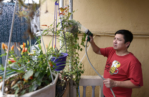Sống trong không gian thành thị chật hẹp, vợ chồng nghệ sĩ rất thích trồng thêm cây xanh ngoài ban công. Anh coi việc tưới cây, tỉa cành mỗi ngày cũng là một thú vui tao nhã.