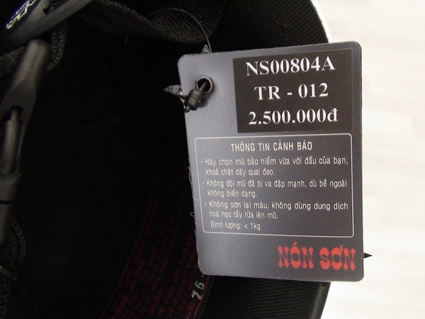 Bên trong chiếc mũ bảo hiểm giá 2.500.000 đồng.
