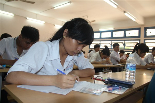 Thí sinh nhận số báo danh vào chỗ ngồi. Ảnh: Hoài Văn