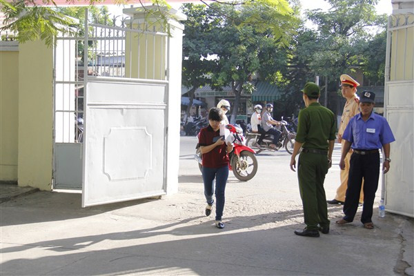 Trong khi đó, ghi nhận tại điểm thi trường ĐH Sư Phạm Đà Nẵng sáng 1/7, có hơn 10 thí sinh hớt hải chạy ra cổng xin ra ngoài để lấy thước, com pa…và trở lại sau giờ vào phòng thi.