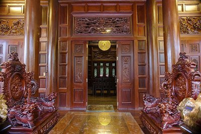 Ngôi nhà trị giá hàng trăm tỷ đồng này được xây dựng từ hơn 500 m3 gỗ lim nguyên khối với tổng diện tích gần 500 m2.