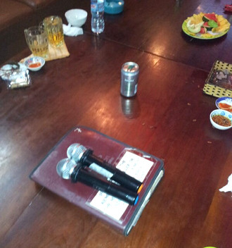 Bên trong các phòng karaoke chỉ có một tivi. Khách chọn bài và hát thông qua mắt hồng ngoại phía dưới tivi và micro không dây