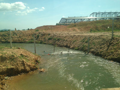 Một kênh thủy lợi lớn chảy xuyên qua nhà máy xử lý rác thải nhưng chưa thấy có các biện pháp bảo vệ con kênh này.