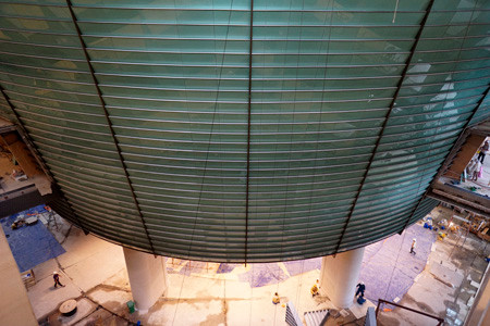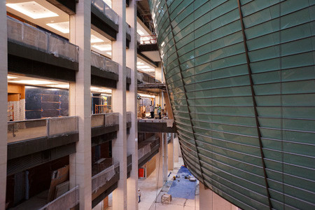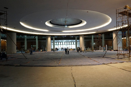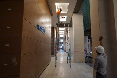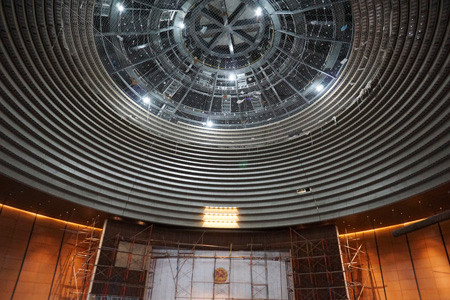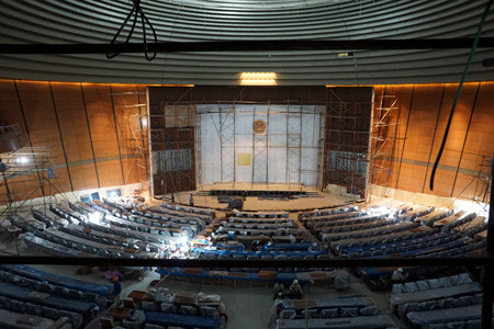 Hạng mục quan trọng nhất của tòa nhà – phòng họp trung tâm được đại diện Ban Quản lý dự án báo cáo đã hoàn thành trên 90% khối lượng công việc. Trần, tường, khán đài chính đang ở những phần ốp lát, lắp đặt trang trí sau cùng. Toàn bộ hệ bàn nâng, ghế ngồi làm việc của đại biểu hình vòng cung được lắp đặt đầy đủ. Theo thiết kế, hội trường có 600 chỗ ngồi chính thức. Phòng họp trung tâm sẽ hoàn thiện trước hạn 15/9.