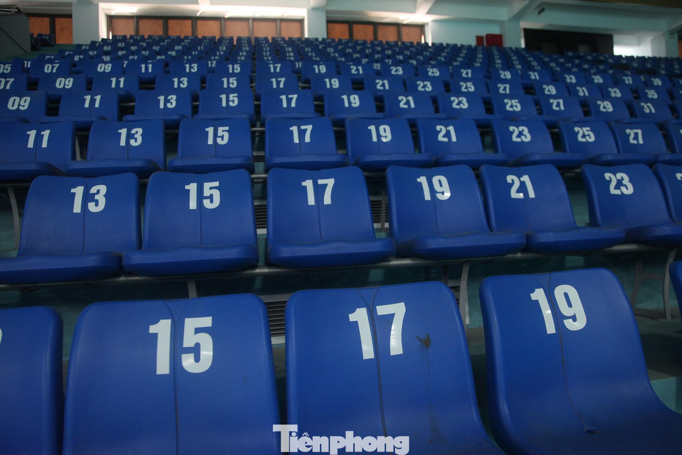 | Khán đài bên trong Nhà thi đấu thể thao tỉnh Bắc Giang được lắp ghế nhựa chắc chắn, sạch đẹp, đồng thời bố trí đầy đủ băng rôn, áp phích khổ lớn tuyên truyền cho SEA Games 31 |