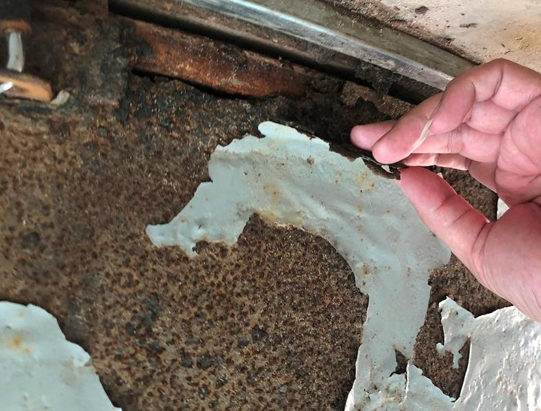 Ngoài ra vách tường nhà vệ sinh tại khu công viên Bắc Linh Đàm phía đường Nguyễn Hữu Thọ được làm bằng tấm sắt đang bị hoen ghỉ, tróc từng mảng sơn, có vị trí hoen ghỉ ăn thủng cả vách ngăn bằng sắt.