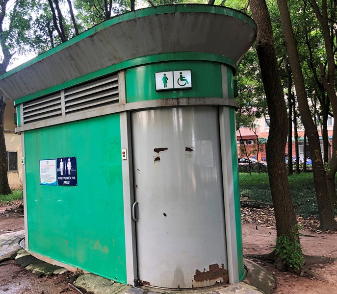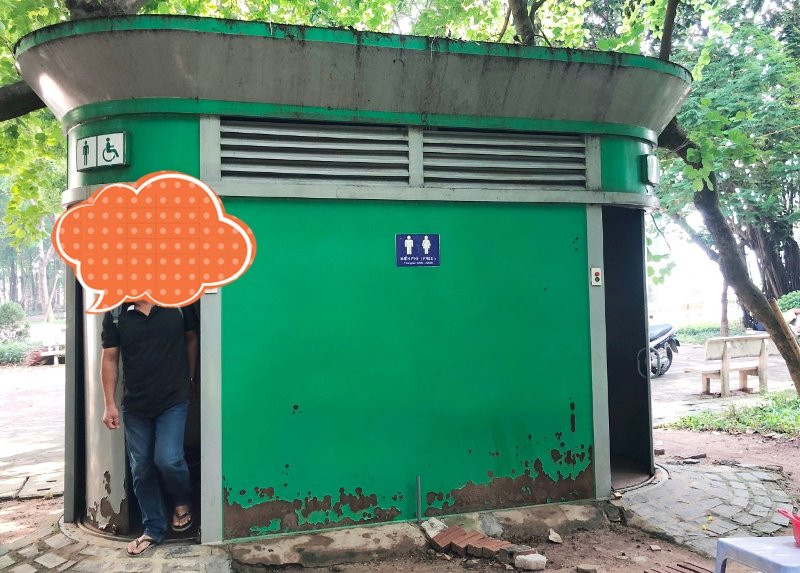 Với nhà vệ sinh được lắp đặt phía bờ hồ, do lắp đặt phía ngoài bờ rào công viên nên người dân đến công viên không thể tiếp cận.