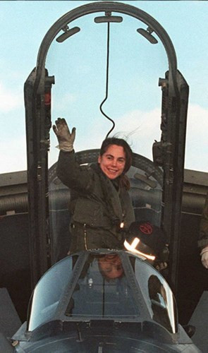 Nữ học viên đang tập lái máy bay chiến đấu tên Ulrike Flender. Cô là nữ quân nhân người Đức đầu tiên tốt nghiệp trường đào tạo phi công danh tiếng ENJJPT.