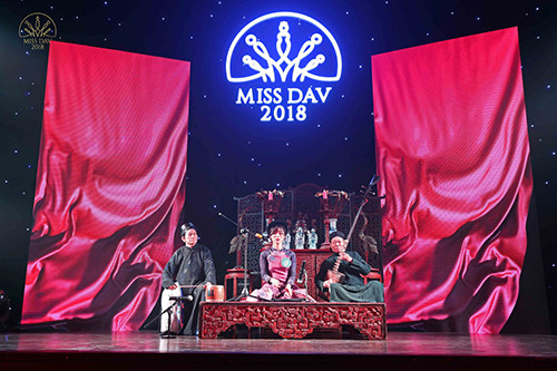 Hóa thân thành cô gái hát chầu văn duyên dáng hát "Cô đôi thượng ngàn", Ngô Nhật Lệ mang số báo danh MD41 đã giành tấm vé bước thẳng vào vòng Chung kết "Hoa khôi Ngoại giao - Miss DAV 2018".