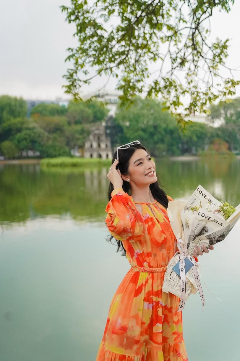 Không chỉ khám phá ẩm thực, Top 6 Miss World 2021 còn dành nhiều thời gian dạo quanh phố phường Hà Nội và thực hiện một bộ ảnh tại Hồ Gươm - biểu tượng của thủ đô Việt Nam. Miss Indonesia 2020 nổi bật trong thiết kế tông màu vàng cam của NTK Lê Thanh Hòa. Phom váy maxi thướt tha, kết hợp chất liệu mỏng nhẹ và những đường cắt xẻ tinh tế giúp tôn lên vẻ đẹp trẻ trung, năng động nhưng không kém phần quyến rũ của Pricilia Carla Yules.