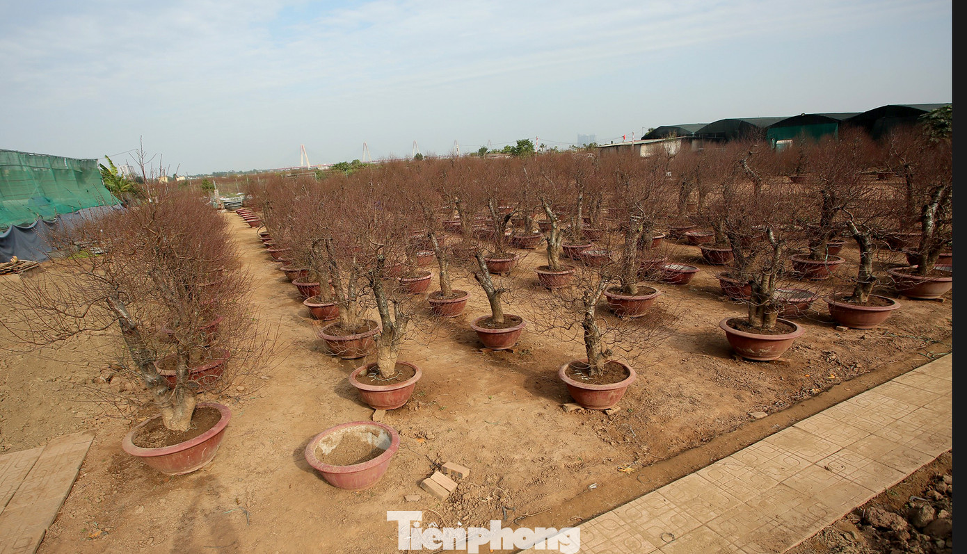Tại làng Nhật Tân (Tây Hồ, Hà Nội), các nhà vườn đang gấp rút hoàn thiện những công đoạn cuối cùng chăm sóc cây đào để thu hoạch đúng dịp Tết Nguyên Đán.