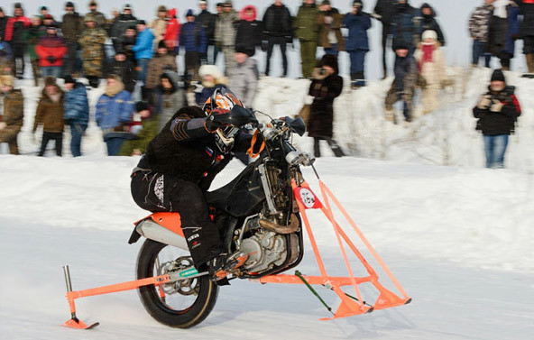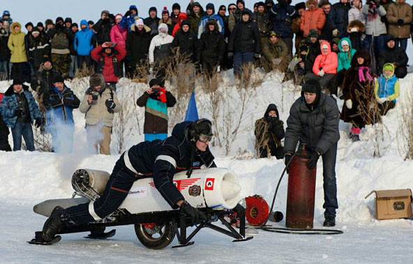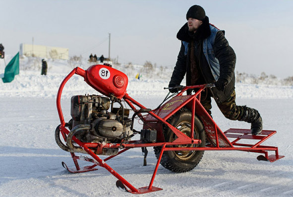 Những người tham dự mang tới cuộc thi những chiếc mô tô trượt tuyết có thiết kế và động cơ vô cùng khác thường.