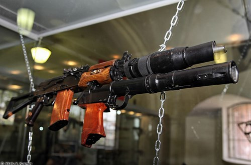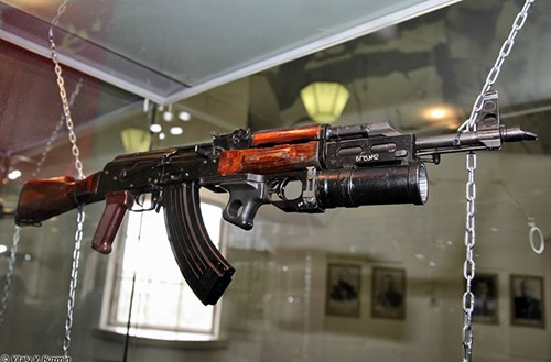 Súng trường tiến công AKM gắn súng phóng lựu kẹp nòng GP-25 cỡ 40mm, đạt tốc độ bắn 20 phát/phút, tầm bắn hiệu quả trong tầm mắt 100-400m.