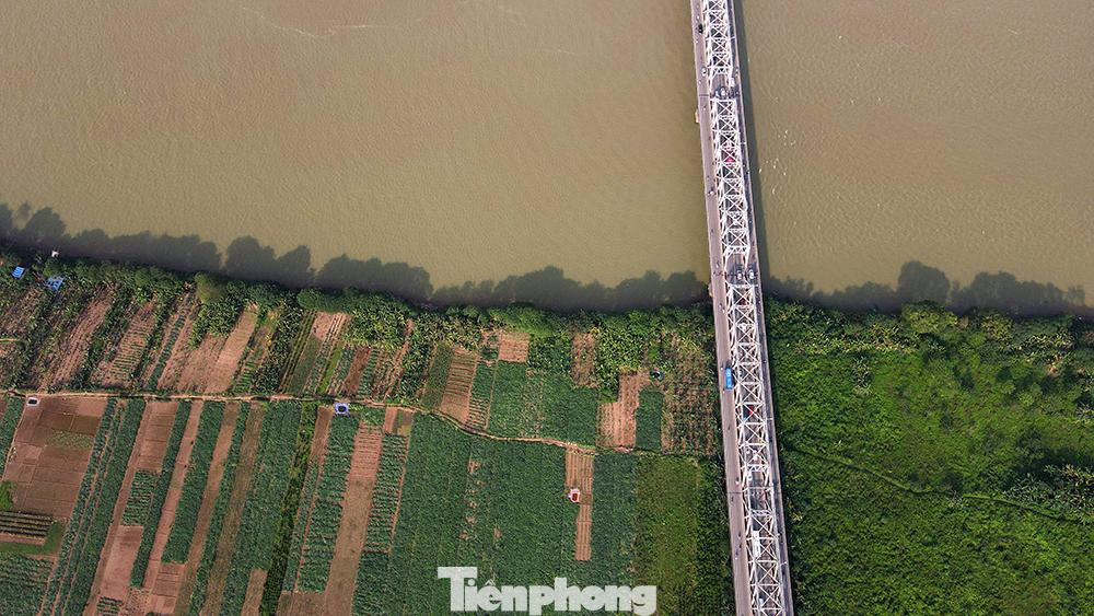| Khoảng đất rộng mênh mông giữa đôi bờ sông Hồng ở khu vực các quận trung tâm Hà Nội nhìn từ trên cao. |