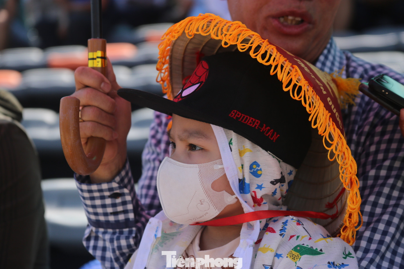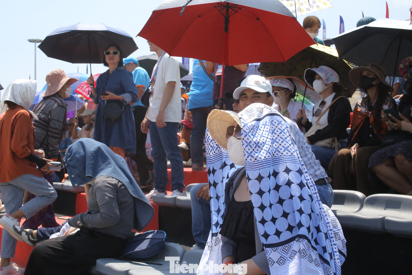Thời tiết TP. Quy Nhơn gần trưa 23/3 lên đến 29 độ C. Người xem dùng mọi cách để chống nắng, thích thú đứng, ngồi theo dõi những màn tranh tài của các VĐV.