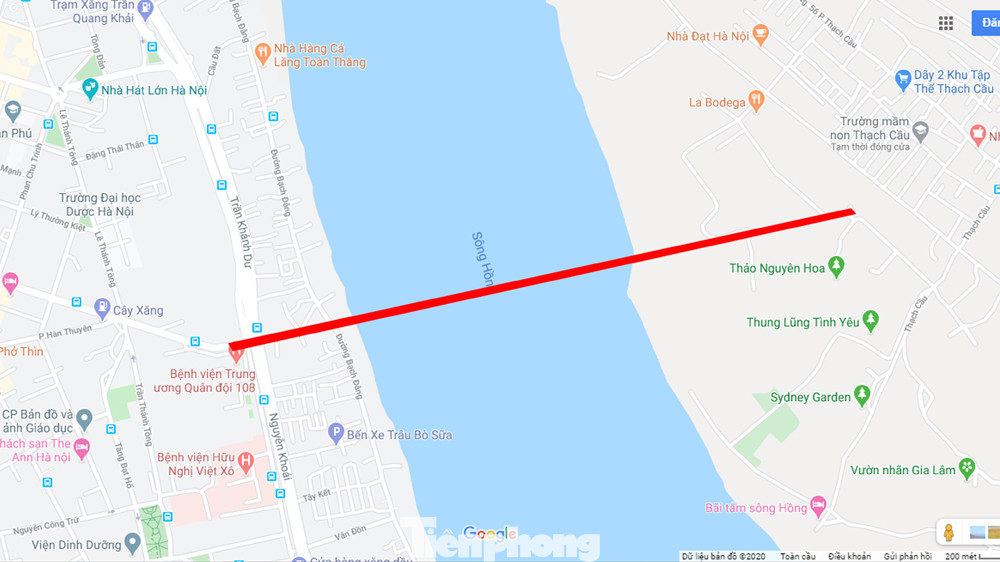 Vị trí dự kiến cầu Trần Hưng Đạo được xây dựng với khoảng cách 2 bên bờ sông không quá xa như nơi dự kiến xây dựng cầu Tứ Liên (quận Tây Hồ).