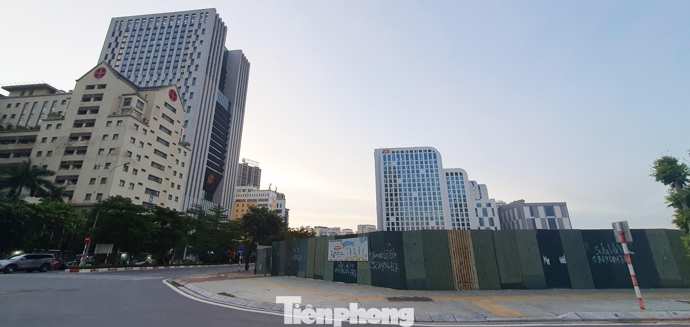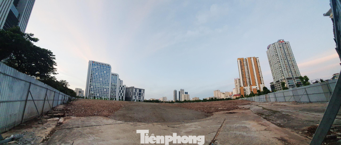 Hiện ô đất đang được quây tôn, bên trong mặt bằng đã được san phẳng sạch sẽ, sẵn sàng cho việc xây dựng.