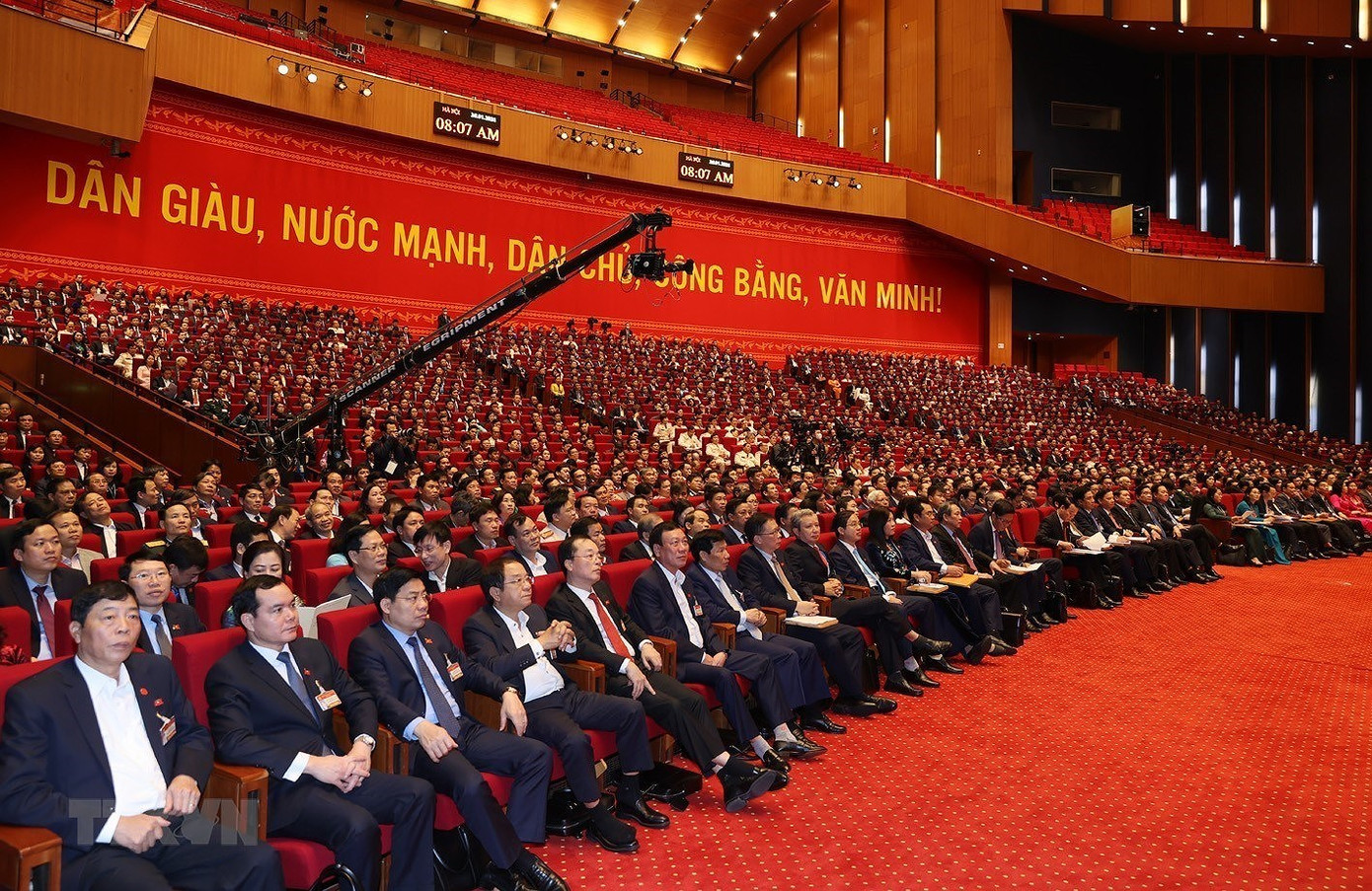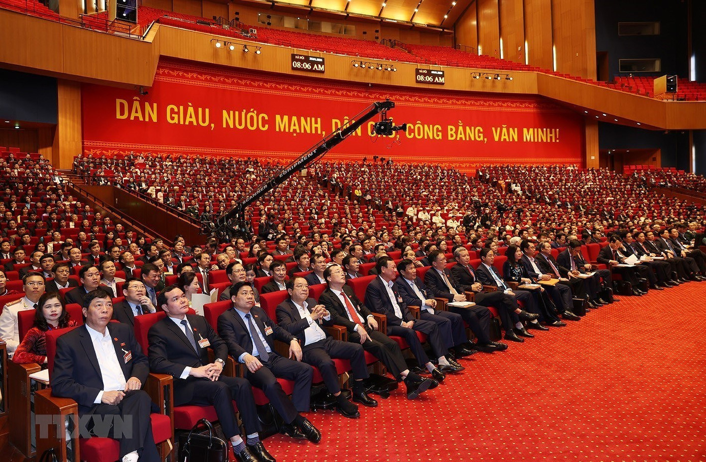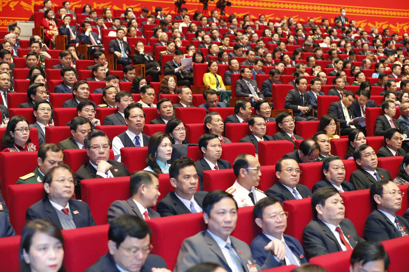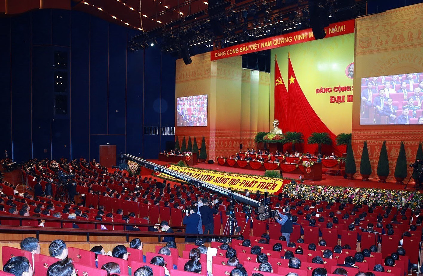 Đại biểu dự phiên thảo luận các văn kiện đại hội tại hội trường, sáng 28/1 (Nguồn: TTXVN)