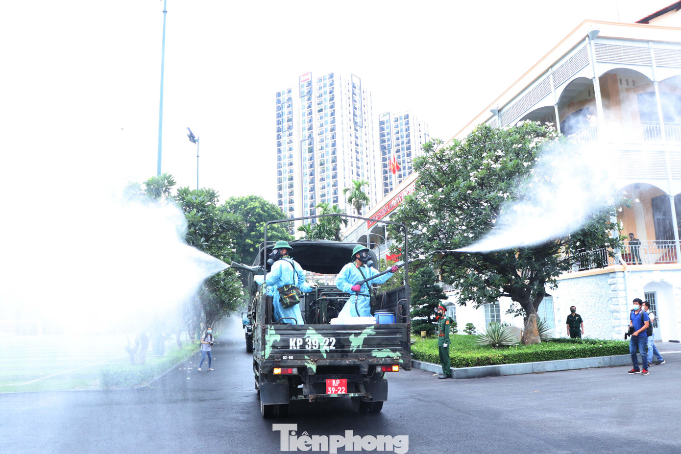 | Các lực lượng vũ trang quận huyện cũng tham gia vào công tác phun khử khuẩn toàn TPHCM lần này. |