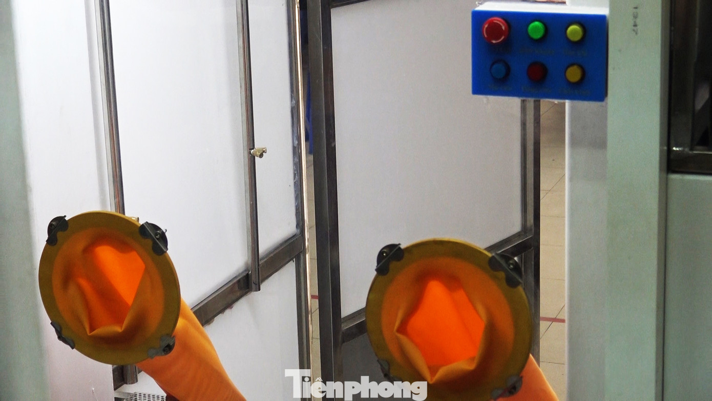 Thay vì đối diện trực tiếp, người nghi nhiễm Covid-19 sẽ được đứng cách ly trong cabin, nhân viên y tế sẽ đứng bên ngoài và thao tác qua bao tay, nhằm giảm tiếp xúc trực tiếp của người nghi mắc COVID-19 và nhân viên y tế.