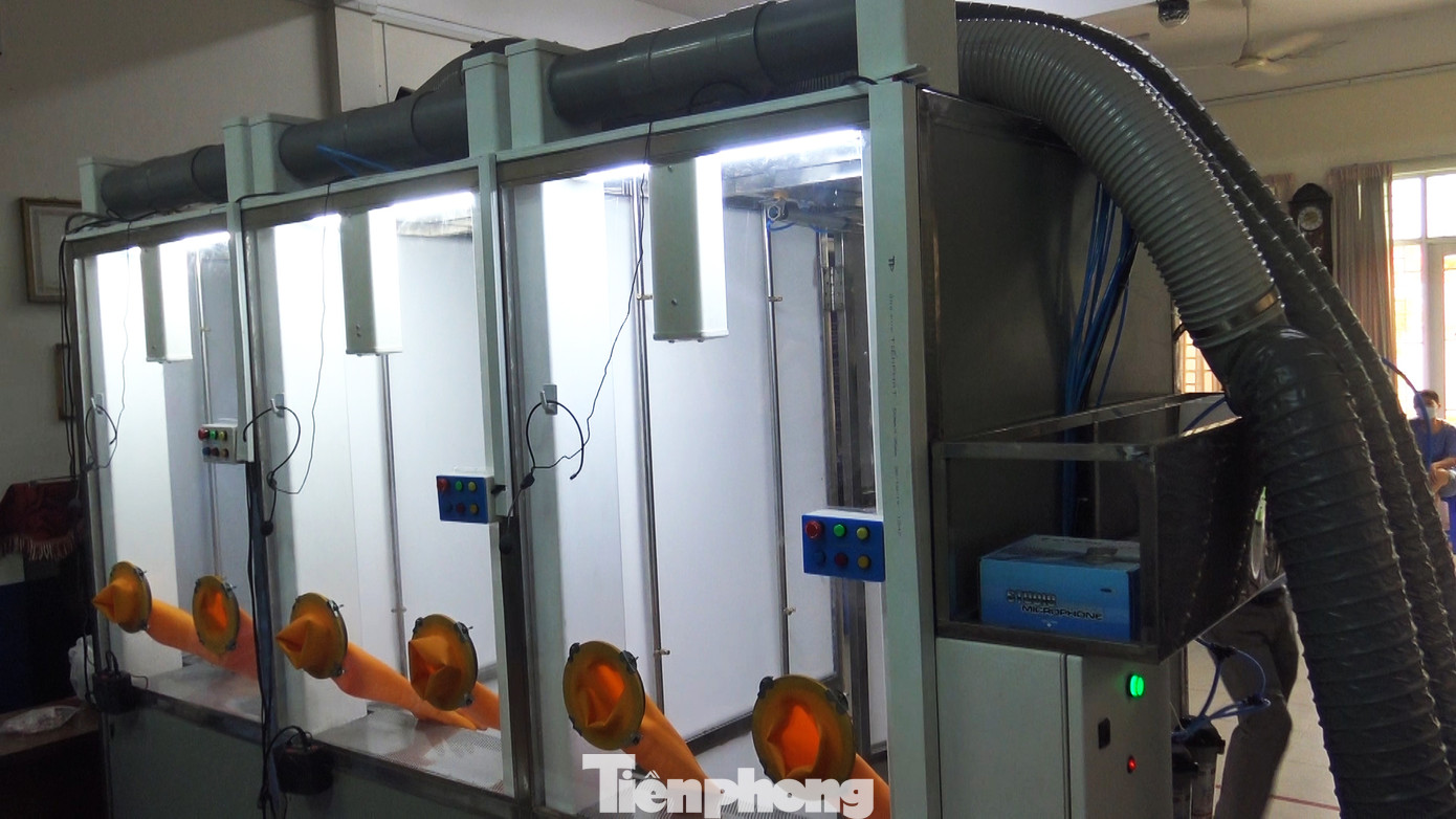 Để đảm bảo an toàn cho bác sĩ cũng như bệnh nhân, bệnh viện quận 2, TPHCM đã chế tạo hệ thống cabin lấy mẫu giúp bác sĩ không phải đối diện trực tiếp với người bệnh.