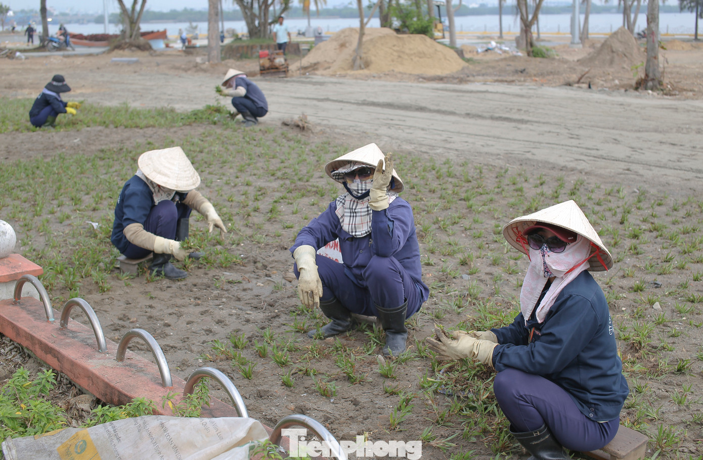 | Việc tạo cảnh quan đô thị cũng đang được gấp rút hoàn thiện. Ảnh: Trương Định |