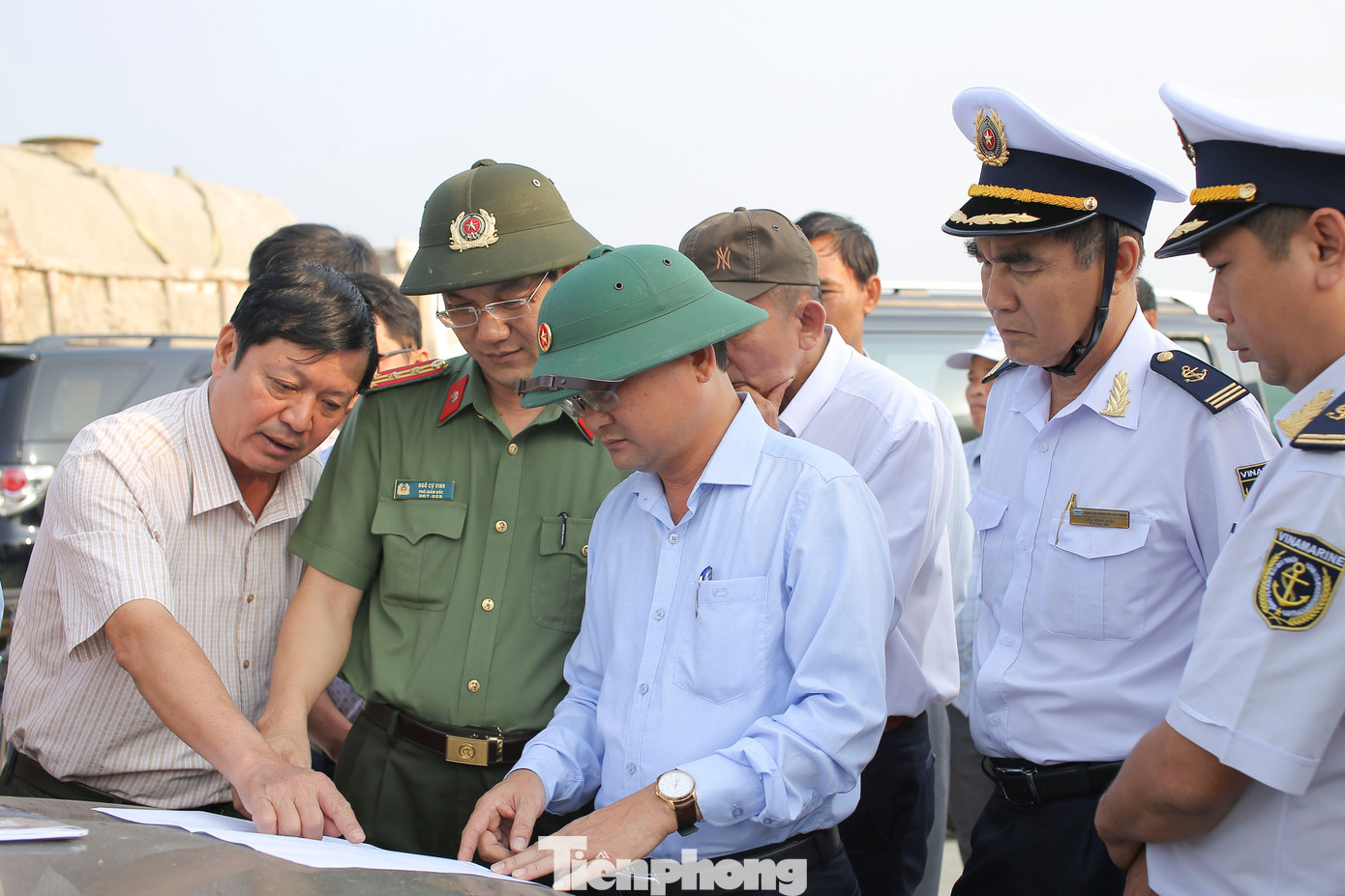 | Chủ tịch tỉnh Bình Định Phạm Anh Tuấn (bên phải) và Phó Chủ tịch Nguyễn Tự Công Hoàng (bên trái) kiểm tra tại hiện trường. Ảnh: Trương Định |