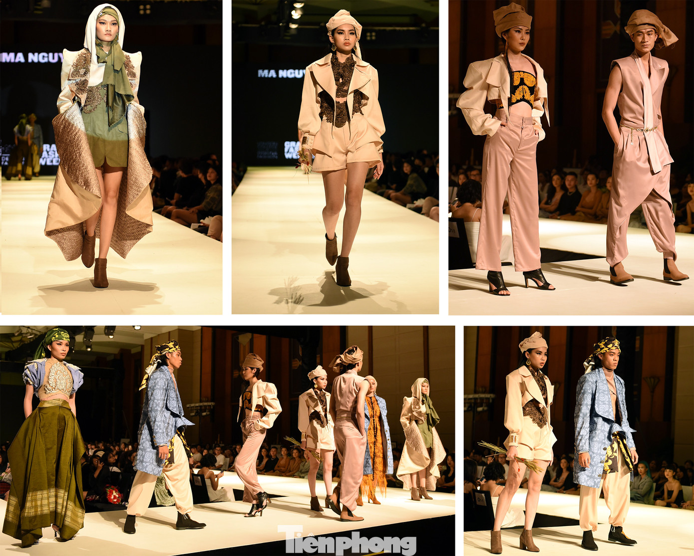 Mã Nguyệt Mai mang đến bộ sưu tập “Chàm” sử dụng chất liệu lụa tơ tằm, đũi, thổ cẩm và kỹ thuật đan sợi để tôn vinh nét đẹp của làng nghề dệt vải thủ công truyền thống Việt Nam. Ngoài ra, bộ sưu tập được thiết kế theo hướng đa chức năng, người mặc có thể biến đổi, kết hợp để tạo thành nhiều kiểu trang phục khác nhau.