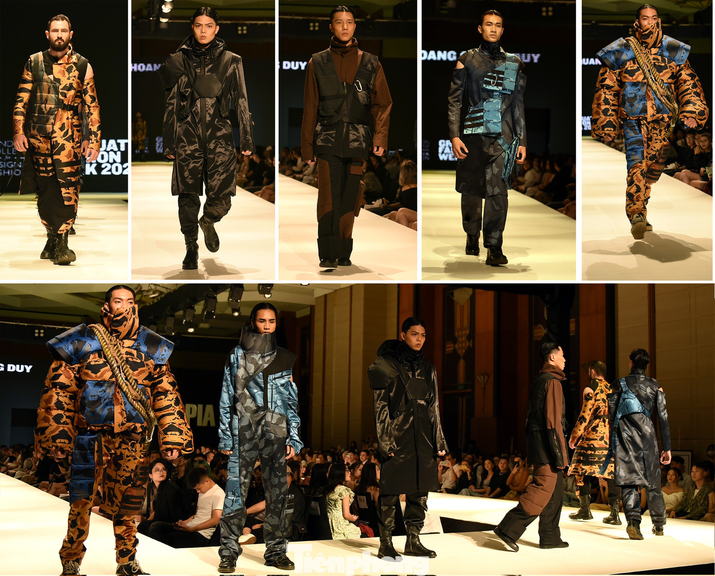 Hoàng Quang Duy mang đến bộ sưu tập "Nothing dangerous - Không có gì nguy hiểm" mang tinh thần tự do của những con người đam mê leo núi. Từ cấu trúc cứng cáp đến tông màu vàng, xanh lam ấn tượng và họa tiết in lấy cảm hứng từ ngọn núi Everest, tất cả đều mang đến một sức sống mạnh mẽ cho bộ sưu tập. Form dáng của các thiết kế chính là sự pha trộn của chiếc áo giáp sắt, trang phục bảo hộ và trang phục thể thao ngoài trời.