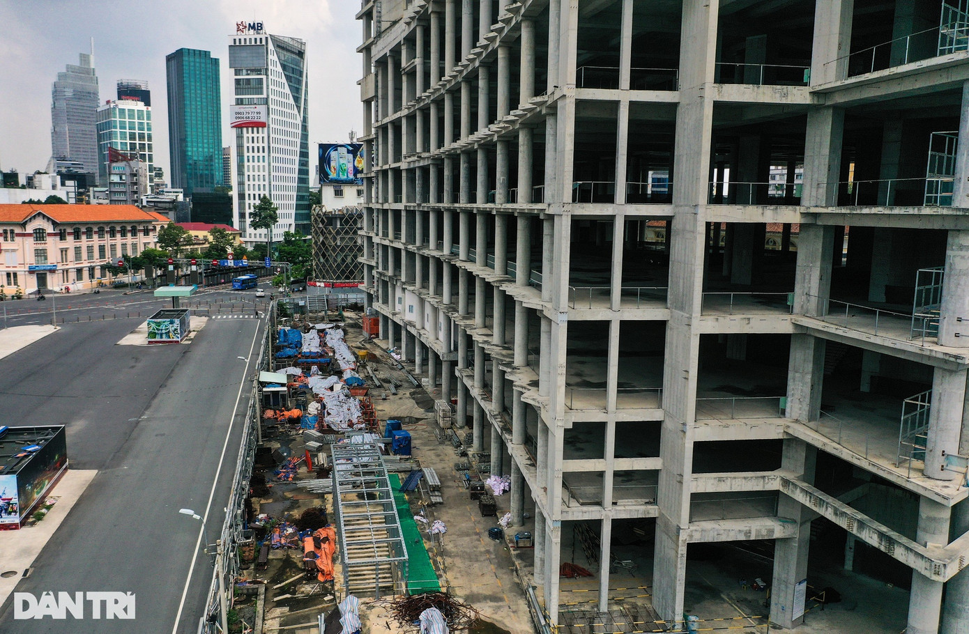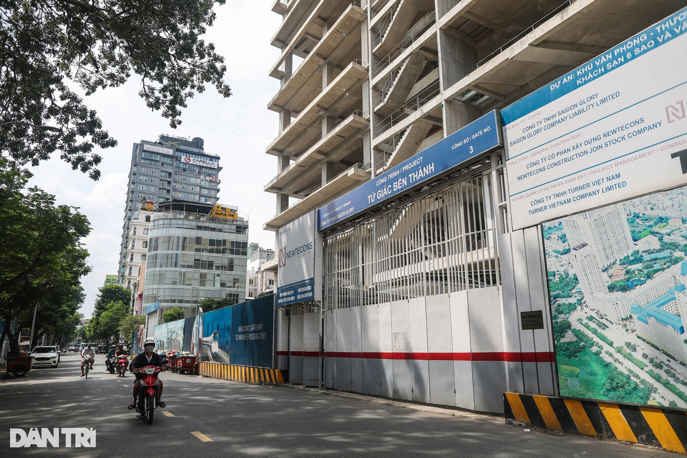 Qua tay 2 "ông lớn" rồi cuối cùng lại trở về với Saigon Glory, dự án đã dừng thi công nhiều tháng nay. Công trình được quây kín bên ngoài, các cửa ra vào cũng kín bưng. Bên trong dự án, vật liệu xây dựng chất đống ngổn ngang, không bóng người.