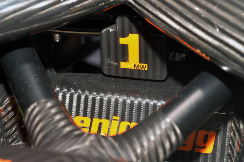 One:1 là mẫu xe đặc biệt của Koenigsegg, sử dụng động cơ 5 lít tăng áp kép V8 cho công suất 1.341 mã lực, mô-men xoắn cực đại 1.371 Nm.