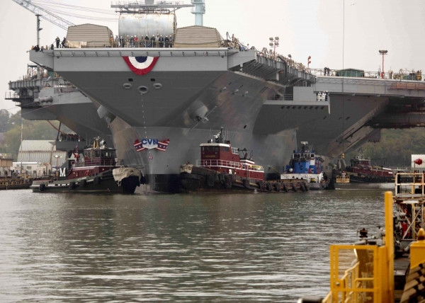 Theo CNN, USS Ford dự định sẽ gia nhập hạm đội tàu chiến Mỹ vào tháng 2/2016. Một khi được triển khai, đây sẽ trở thành tàu sân bay lớn nhất từ trước tới nay. USS Ford sẽ có những thay đổi, cải tiến so với lớp tàu Nimitz hiện nay. Siêu tàu sân bay USS Gerald Ford ước tính có giá 13 tỉ USD khi đi vào hoạt động. Ảnh: Business Insider.
