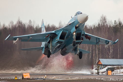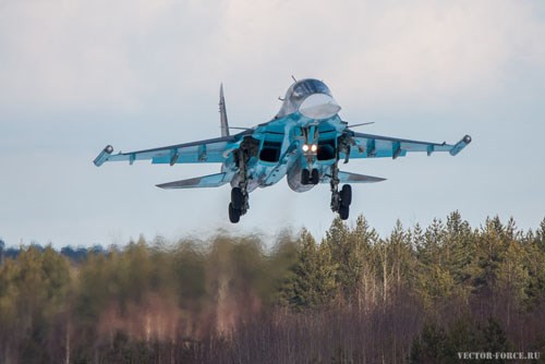 Máy bay ném bom Su-34 lao lên bầu trời.