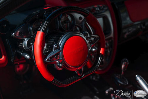 Mẫu siêu xe được David đặt riêng cho mình, vì thế được thiết kế theo những yêu cầu riêng. Thân xe hoàn toàn làm từ sợi carbon, điểm nhấn là các chi tiết màu đỏ, như cả bộ vành đỏ rực nổi bật. Sự kết hợp 2 tông màu cũng được thể hiện trong cabin, với màu đỏ là tông chủ đạo.