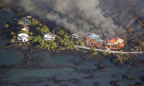 Dòng dung nham nóng rực phá hủy các ngôi nhà ở khu vực Kapoho, phía đông Pahoa ngày 5/6