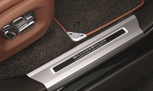 Nội thất bọc da với nhiều chi tiết ốp gỗ óc chó và kim loại mạ crôm. Bên dưới nút điều chỉnh điều hòa có logo phiên bản đặc biệt trong khi vị trí nút vặn chuyển chế độ vận hành có thêm chi tiết do chính những nghệ nhân của Holland & Holland điêu khắc.