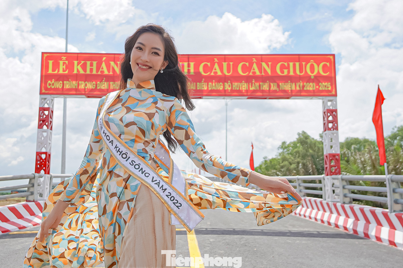 Hoa khôi cao 1,76 m nổi bật trong ngày khánh thành cầu Cần Giuộc