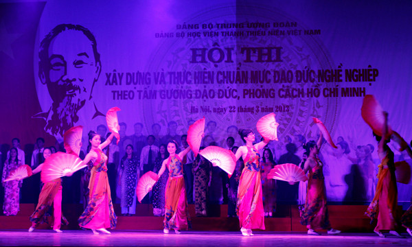 Tối 22-3, Học viện Thanh thiếu niên Việt Nam tổ chức Hội thi “Xây dựng và thực hiện chuẩn mực đạo đức nghề nghiệp theo tấm gương đạo đức, phong cách Hồ Chí Minh”. Góp mặt thi tài là 8 đội đến từ các chi bộ trong Học viện..