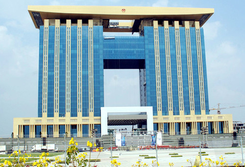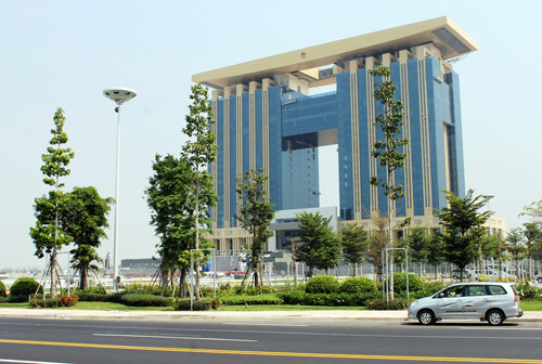 Mặt tiền Trung tâm hành chính nhìn ra quảng trường trung tâm và công viên thành phố Bình Dương.