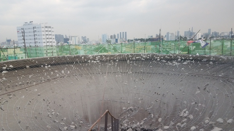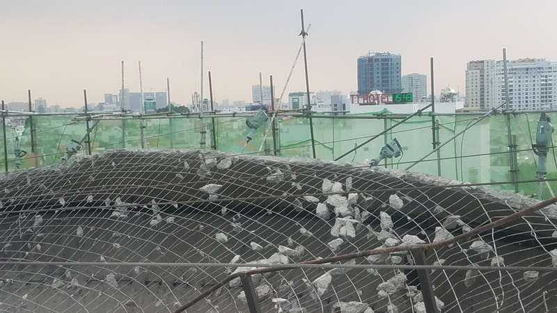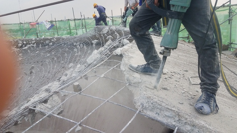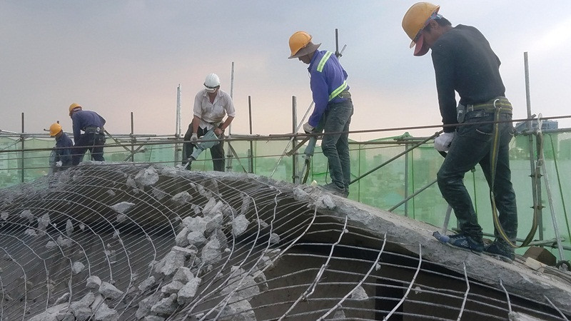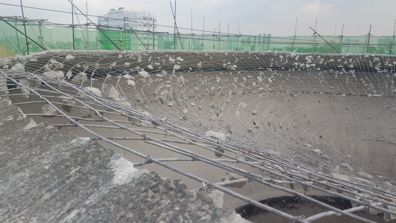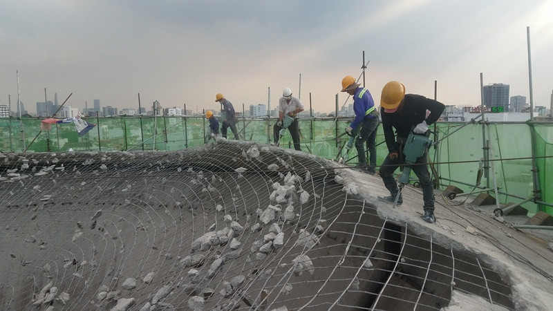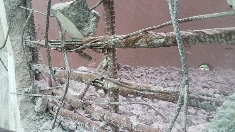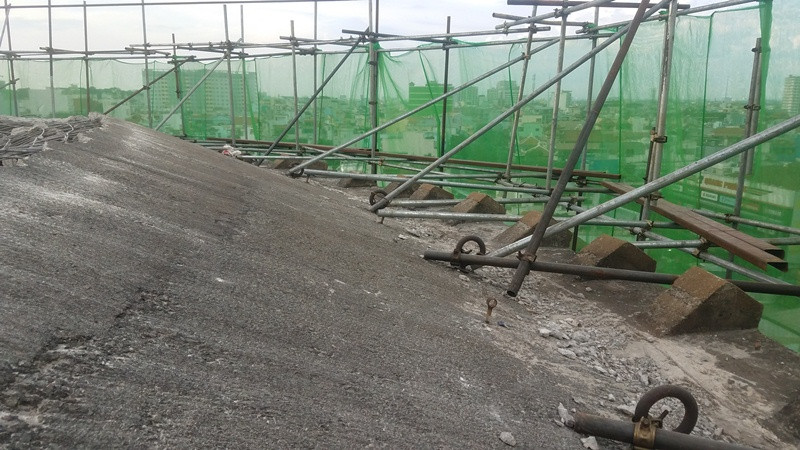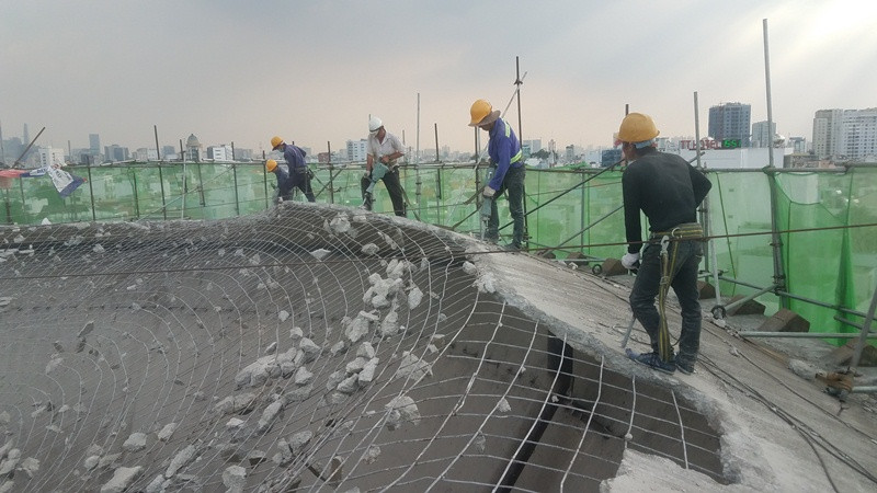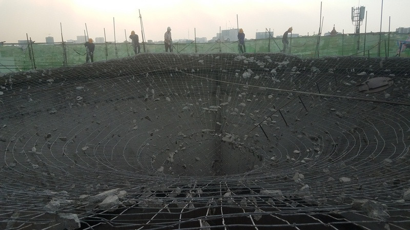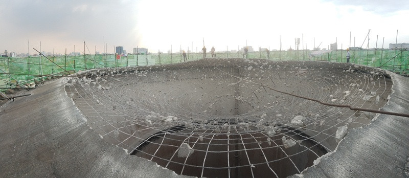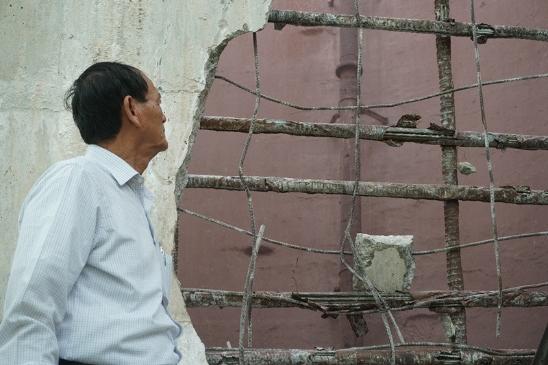 Ông Huỳnh Hữu Hiệp, đại diện đơn vị giám sát thi công cho biết, phần nắp, mái phía trên thủy đài được khoan, đập thành từng mảnh nhỏ.